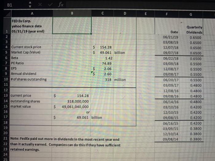 Solved Fed Ex Corp Yahoo Finance Data 05 31 21 Year End Chegg Com